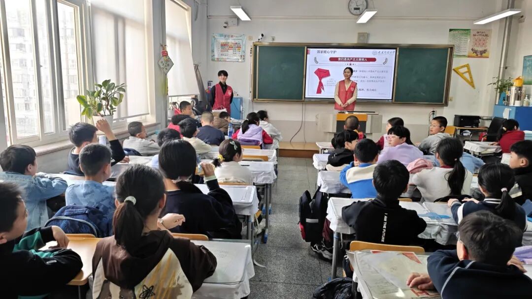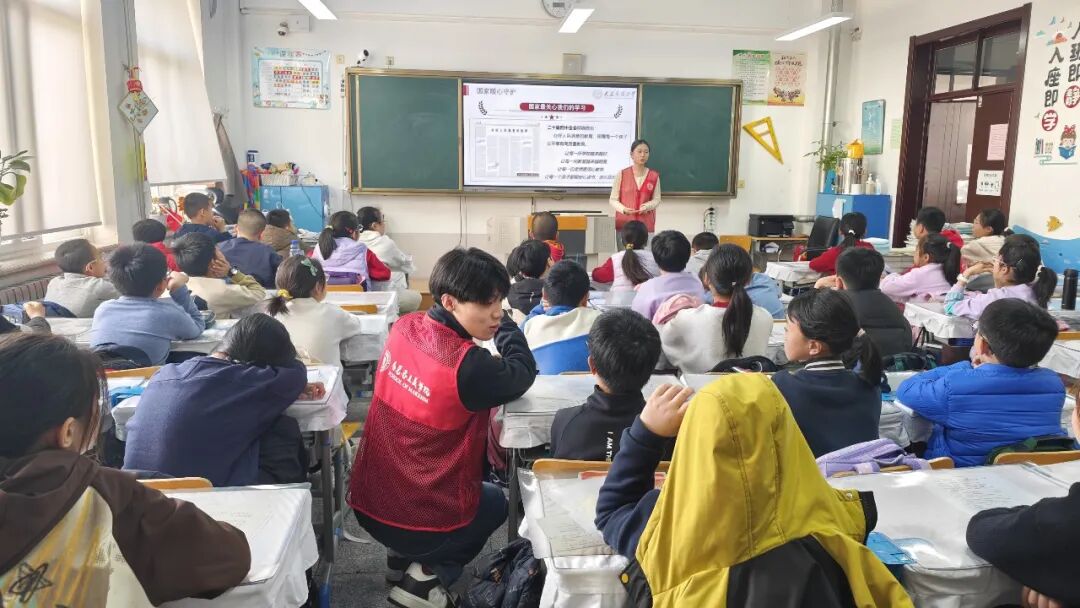 趣味互动让课堂氛围愈发热烈。宣讲员把社会主义核心价值观拆解为日常学习、生活中的点滴行动,化作孩子们听得懂、能践行的小目标,大家踊跃互动,欢声笑语中理解在深刻,记忆在加深。随后,全体同学在宣讲团成员的带领下,齐声高唱国歌,嘹亮的童声响彻教室。