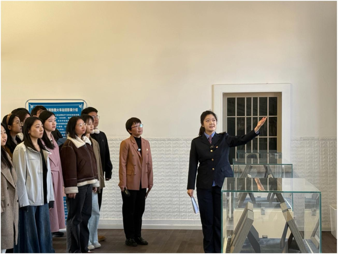 为认真贯彻落实习近平总书记强调的“把思政教育‘小课堂’和社会‘大课堂’有效融合起来”的指示精神,推动青年学生理论学习从静态接受到动态感知的实践,3月27日,我院组织开展“行走的思政课——枕木上的周水子”主题实践活动。活动邀请中国近现代史纲要教研室主任王金凤,带领青年学生走进具有百年历史的大连周水子火车站,以铁路为载体,在实地研学中感悟中华民族血泪史、矢志不渝的奋斗精神,以及新时代伟大成就。